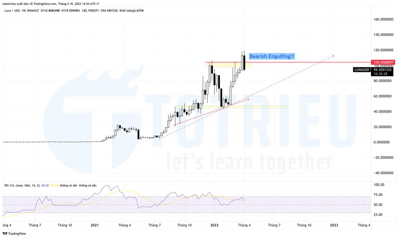 - Vùng giá quan trọng: Kháng cự tại 50% Body nến ở $104 – $105. Hỗ trợ gần nhất tại $80 và xa hơn là $40.