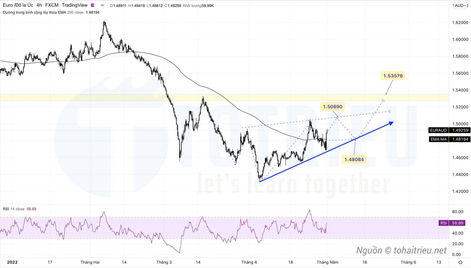 - Vùng giá quan trọng: Hỗ trợ quan trọng tại Up Trendline ngắn hạn 1.4750 – 1.4800 đồng thời là EMA200. Kháng cự tại Big Round Number 1.5000 và Kháng cự cũ tại 1.5370 – 1.5400.