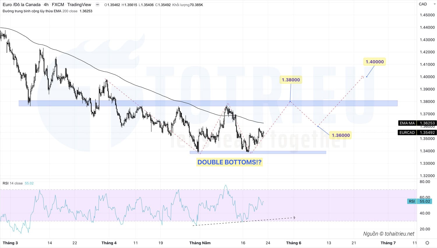 - Mục tiêu nếu đúng: Chờ tín hiệu Breakout EMA200 tại 1.3600 để xác nhận thêm. Mục tiêu 1.3800 và 1.4000