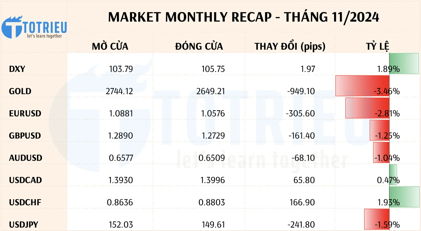 Trading Recap tháng 11/2024: Tháng của USD, Crypto và Chứng khoán Hoa Kỳ