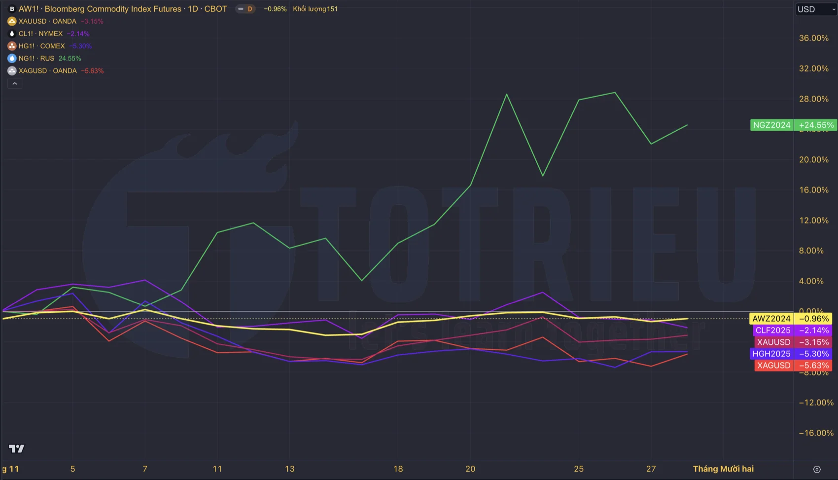 Chỉ số Hàng Hoá Bloomberg (AZW2024) giảm 0,96% trong tháng.