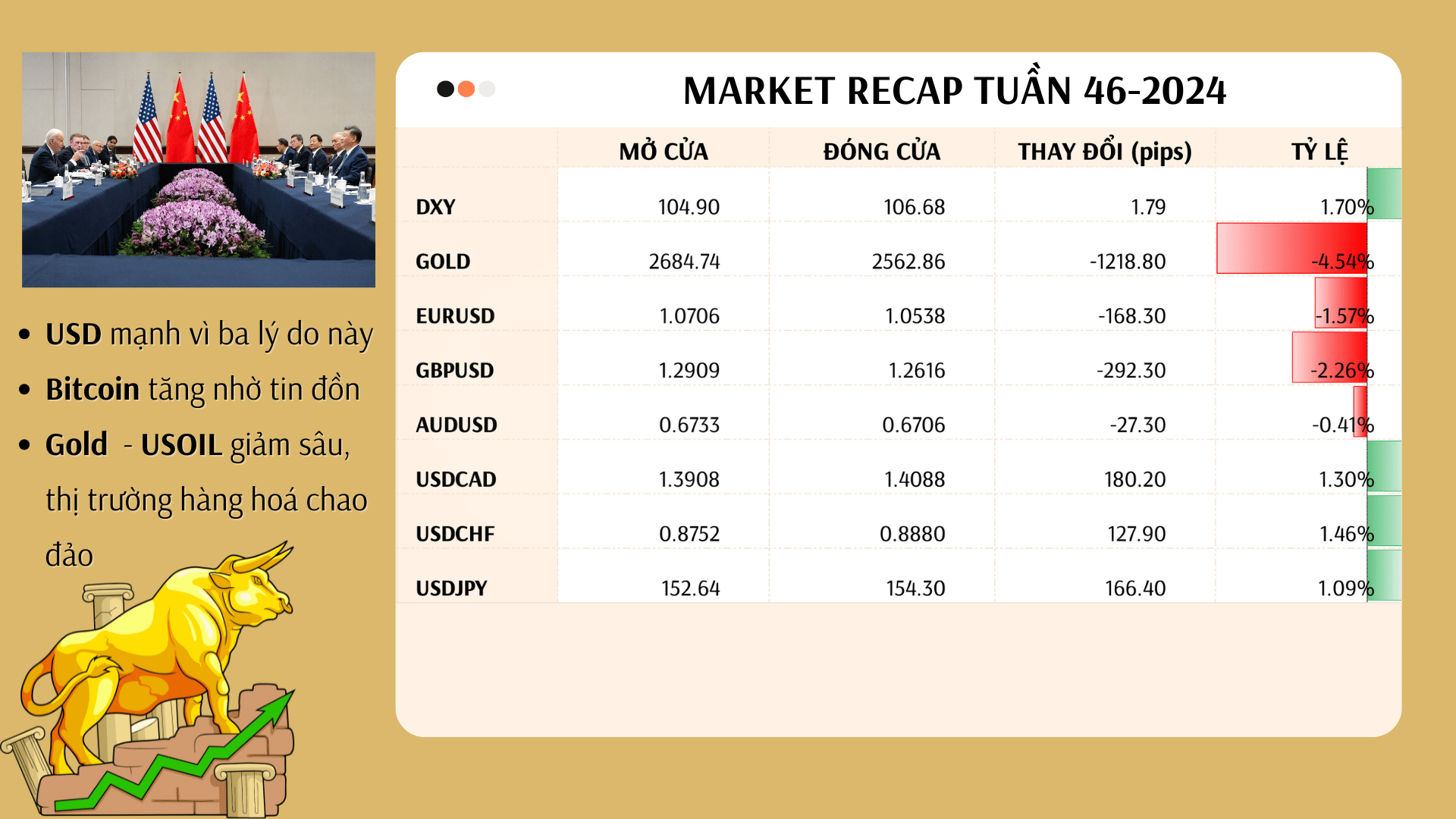 Kết quả giao dịch tuần 41/2024 đã phục hồi được mức lỗ -$442.94 trong tuần 40. Các loại tàn sản trú ẩn như USD, Gold,...