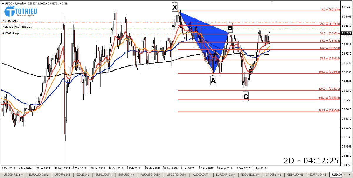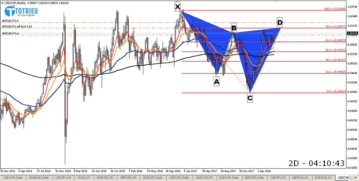 Chart D1 cùng với Chart W1 của USD/CHF đang có xu hướng hình thành Mô hình Harmonic Cypher với tỷ lệ tiêu chuẩn.