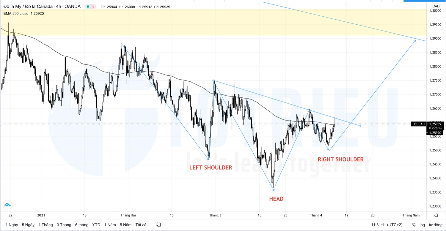 Chiến lược giao dịch USDCAD ngày 07-04-2021: Vai – Đầu – Vai ngược