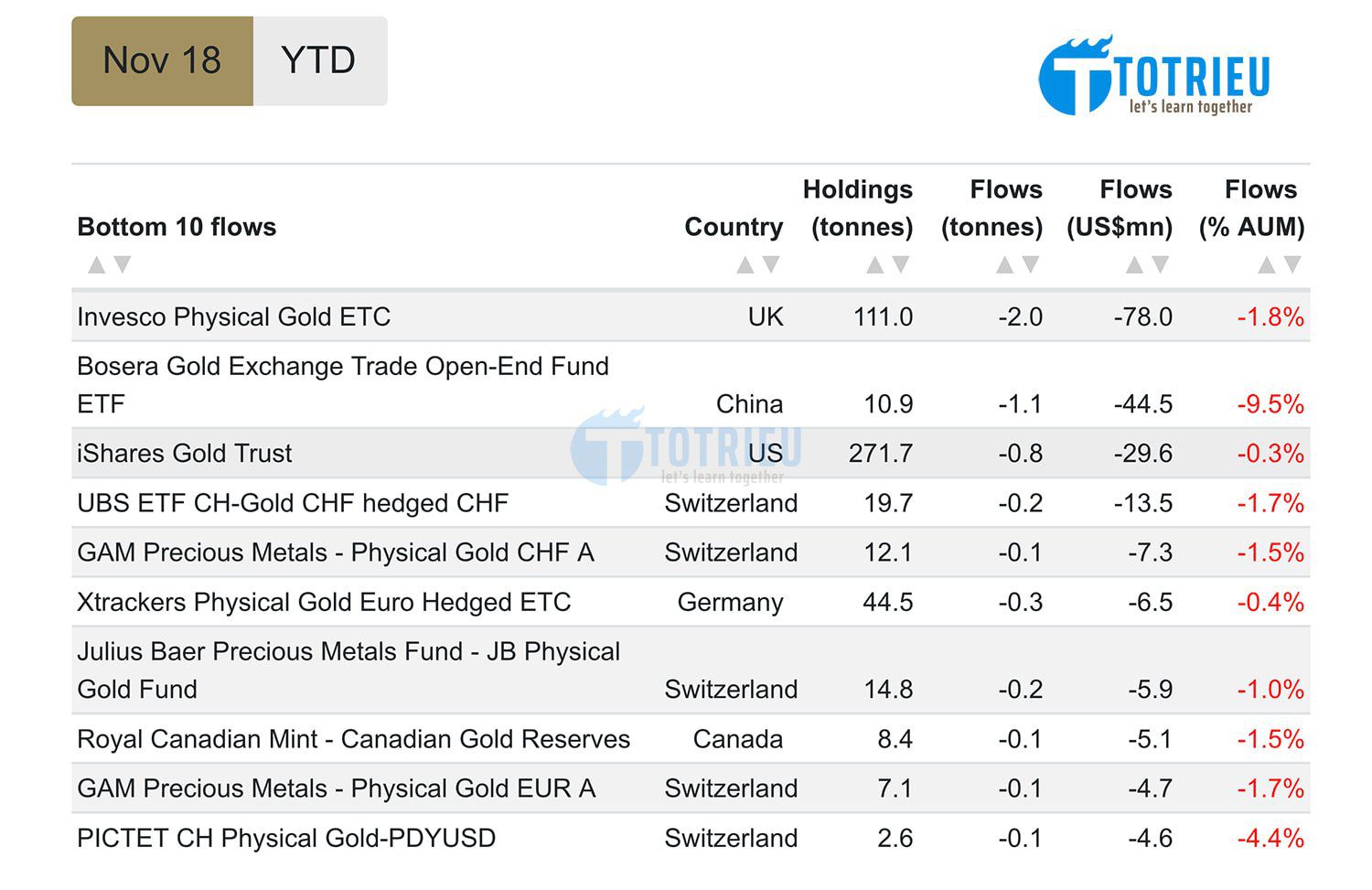 Các quỹ bán ra Vàng trong tháng 11/2018: