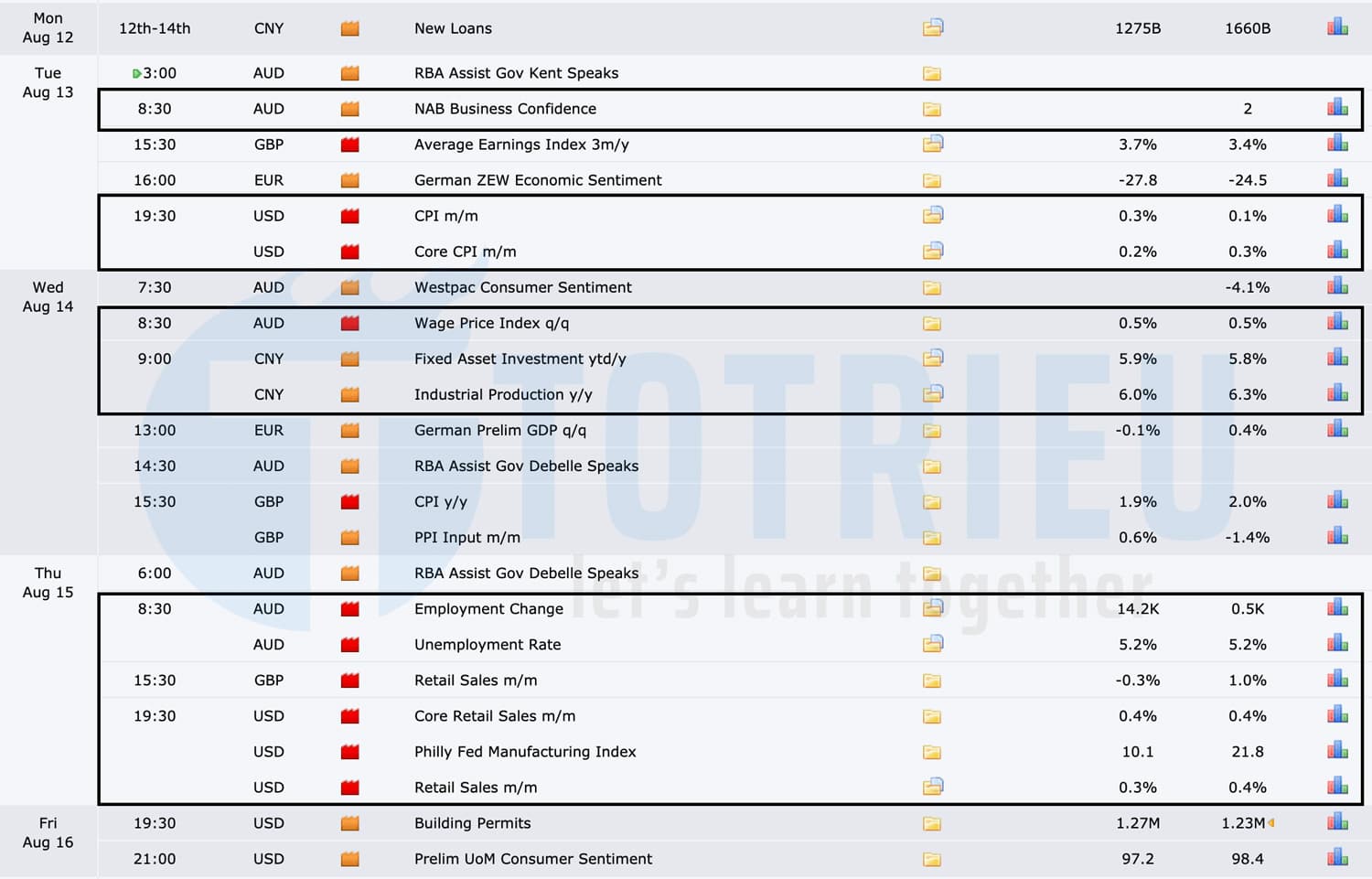 Kể từ tuần 33/2019, Tô sẽ thay đổi cấu trúc các bài phân tích cơ bản và kỹ thuật cho một tuần mới. Mỗi bài viết hiện tại sẽ bao gồm các sự kiện kinh tế tổng quan, sau đó là góc nhìn kỹ thuật của các cặp tiền chính.
